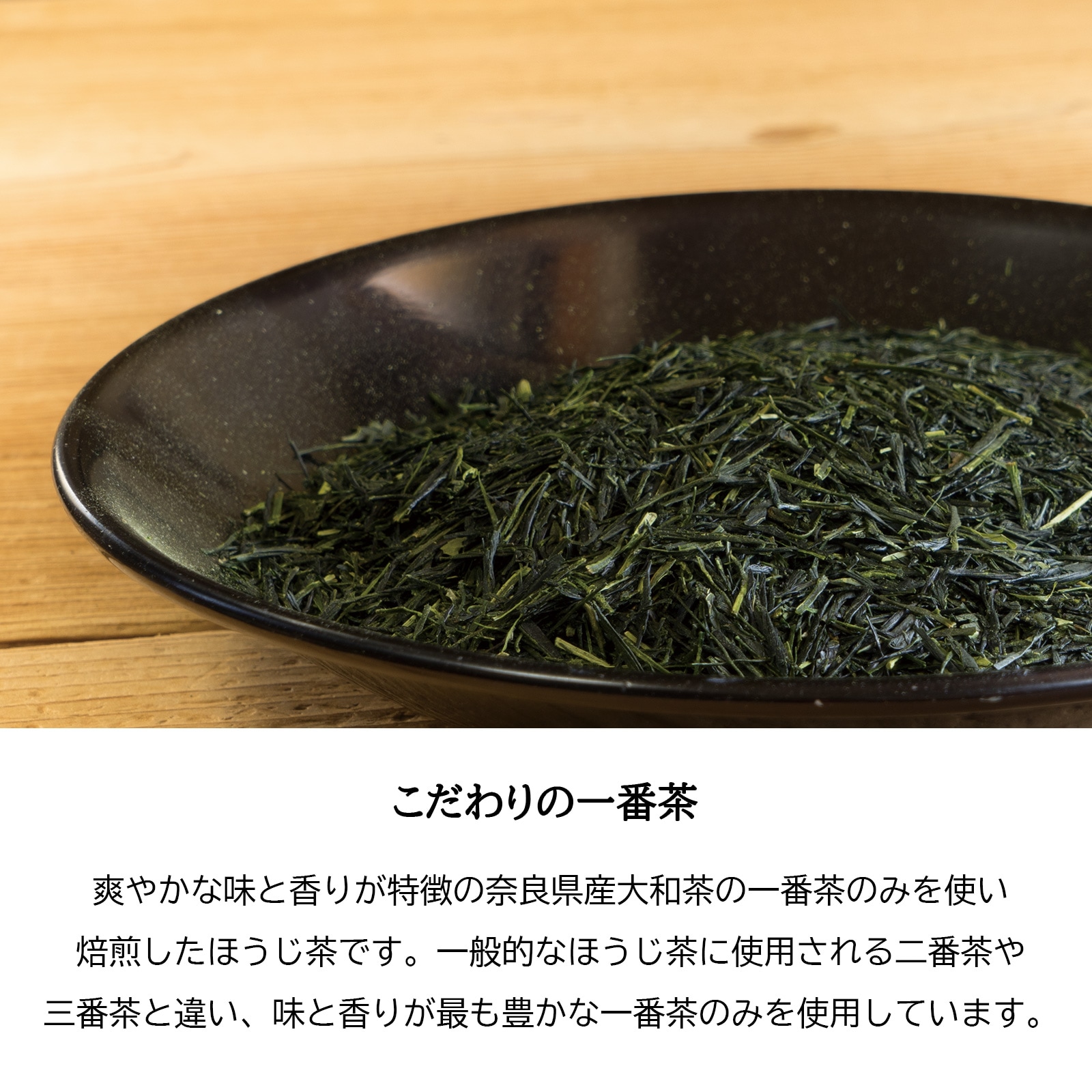 厳選した奈良県産大和茶の一番茶だけにこだわり、味だけでなく香りまで美味しくなるよう丁寧に焙煎しました。