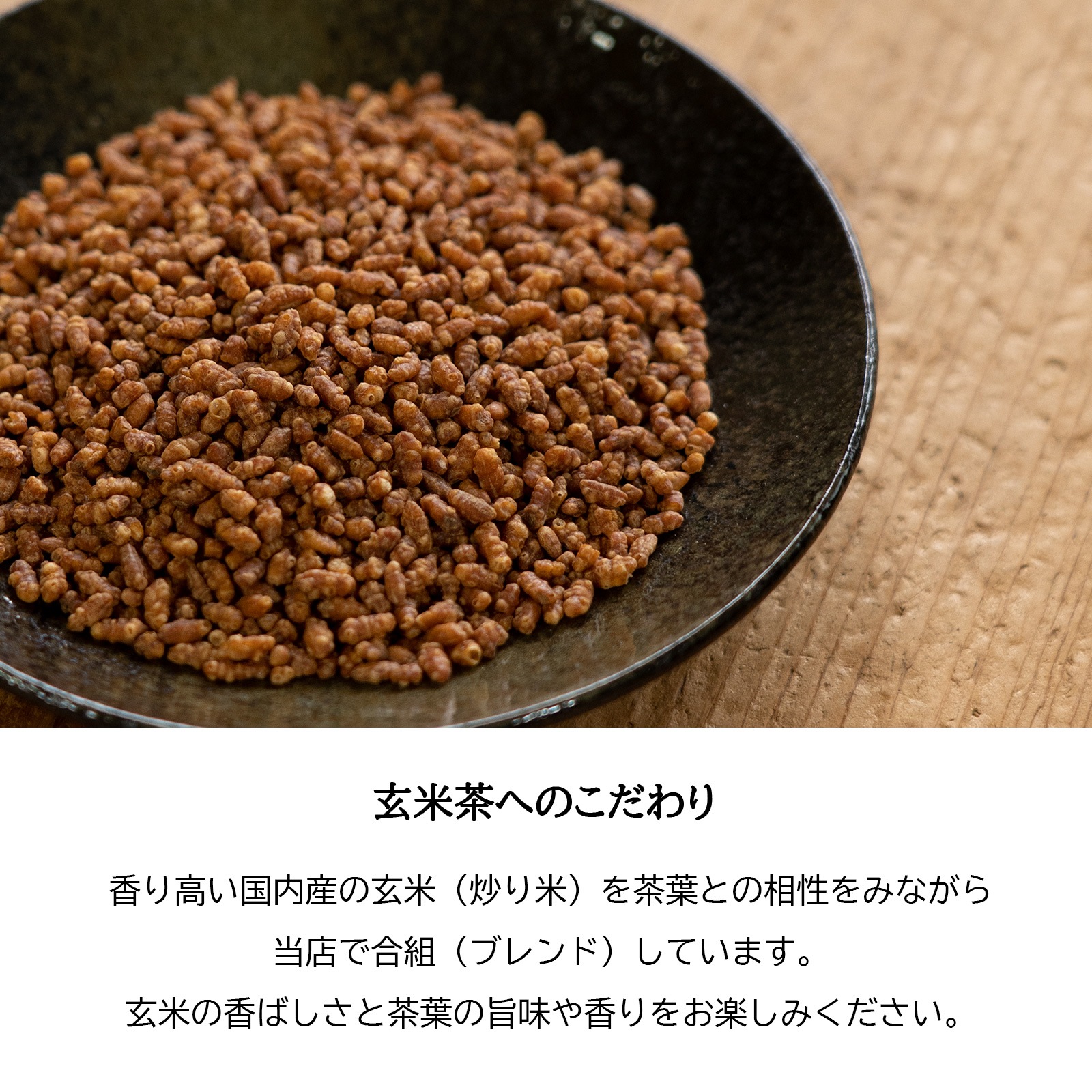 国産玄米を煎茶にブレンドした玄米茶をテトラティーバッグに詰めました。煎茶のすっきりとした渋みと旨味を玄米の香ばしさが一層引き立てます。